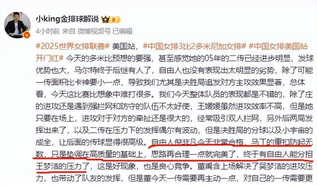 排球媒体人大赞倪非凡,直言她”今天非常合格,马丁的重扣防起无数,只是垫调在高质量的基础上,思路再合理一点就完美了,终于有自由人能分担王梦洁的压力了”。甚至天津自媒体“天津朱云”也赞倪非凡,直言她卡位好,反应快,该表扬必须表扬!